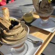 運動の後は、仁淀川町のカフェ巡りで昼食と名産のお茶のスイーツを楽しみました。